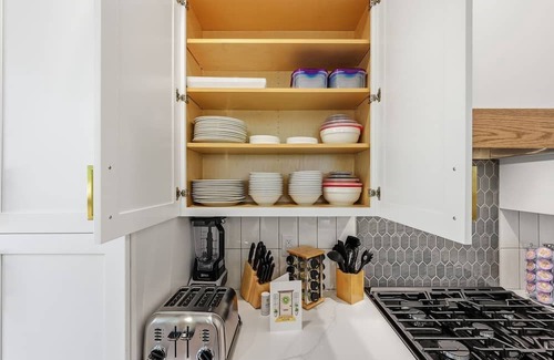 steel appliances, quartz countertops, and all the essentials the adjoining