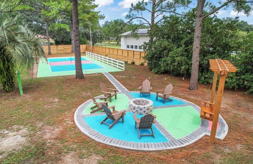 Welcome to your ultimate retreat in Ocala, Florida, the Horse Capital of the World! This spacious 5-bedroom, 3.5-bathroom home sleeps up to 14 guests, offering fun for everyone. Enjoy our private pickleball and basketball courts, a mini-golf course, and a go-kart racetrack for kids (5-9 mph). Indoors, unwind in the game room with a PS4 and arcade area. Relax by the firepit or take a dip in the beautiful pool. this home is perfect for families or groups seeking adventure and relaxation.