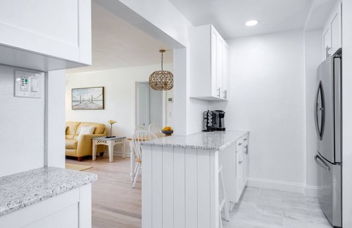 Located within walking distance to the sugary white sands of St Pete Beach, this pool home has been completely remodeled and tastefully decorated with Coastal Décor throughout. Located in the front of the Belle Vista Neighborhood, here you’re within walking distance to the beach, restaurants, shopping and so much more! Inside you’ll find an open floor plan, 2 bedrooms and 1 bathroom are located on the main level and the master suite is upstairs. Comfortable sleeps 8 guests with 1 King Bed in the Master Suite, 1 Queen Bed in the guest room, 1 King Bed in the other guest room, 1 Trundle bed in the Sunroom plus a full crib has been added. The New kitchen features white coastal cabinetry, granite counter-tops, stainless steel appliances and a boutique breakfast bar. Fully stocked with all utensils, plates, pots/ pans and silverware. Enjoy relaxing in the living room with the electric fireplace or soak up some rays in BRAND NEW POOL. The custom outdoor space features a shower, covered patio and the pool is perfect after a day at the beach! Plenty of parking for up to 4 cars.