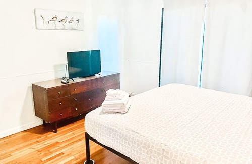 * comfortably sleeps 6, but can accomodate up to 8 guests with an available air mattress which includes extra bedding and linens A portable crib is also available for use.