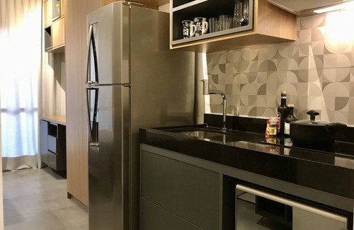 The Studio is new, consisting of bedroom / living room, kitchen equipped with duplex refrigerator, induction cooktop, microwave, blender, sandwich maker, coffee maker. Full bathroom, furnished balcony, workbench, Wi-Fi internet, 49 ”TV, closets and very comfortable bed with sofa bed for a possible 3 guests.
