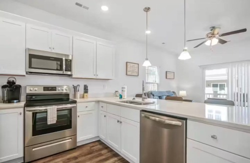 Nestled in the heart of Myrtle Beach, A newly built 4-bedroom retreat designed for families, groups, and beach lovers. Just steps from the sand and minutes from iconic attractions like SkyWheel, Family Kingdom, Broadway at the Beach, and Boardwalk. Smart TVs in every room, a fully equipped modern kitchen with new appliances, a private washer/dryer, a balcony + outdoor grill for laid-back evenings. A Ring Doorbell for added safety. This is a perfect coastal escape.