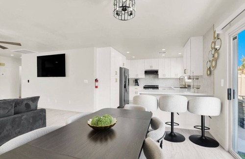 Kick back in this fresh, fully renovated Vegas home! Just 20 mins from the Strip & 30 from the airport, it fits 10 guests across 5 comfy bedrooms. Master’s got a King, others have Queens & a Full. Enjoy 3 baths, smart TVs everywhere, fast Wi-Fi, BBQ grill, & free parking. Washer/dryer included. quiet cul-de-sac vibes but close to the action, perfect for your vegas stay!