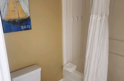 Full size kitchen, dining area, full size pull out in living area. TV in every room, quiet area on the harbor. Sitting on the balcony. Feed the ducks. Driving distant to the beach. 5 min to Tangler Outlet stores, malls, eateries nearby..