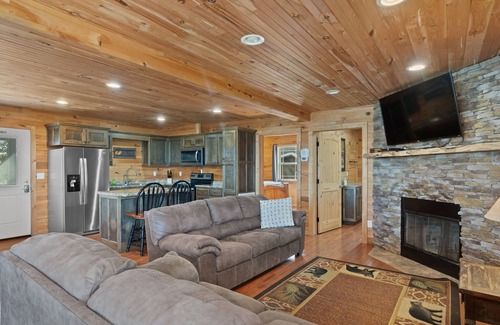 welcome to nickajack overlook at paradise pointe, where breathtaking views, modern comforts, and ample space create the perfect getaway for families and groups This exclusive listing combines two stunning cabins—Sunset Ridge and Rivers Ledge—providing accommodations for up to 16 guests with 7 bedrooms and 5 bathrooms spread across two beautifully designed homes.
