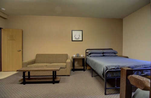 Grand Opening, Booking Fast. Escape to the Northern Loon Hideaway where you will find comfortable studio-style rooms with surrounding nature and lake views. Each room conveniently sleeps 5 with a queen size bed, a twin/full bunk bed and a full day bed. There is also a dinette table with seating for 4, as well as a sofa. The community bathroom is a short walk down the hallway with individual showers and toilet stalls. (2 night minimum stay)