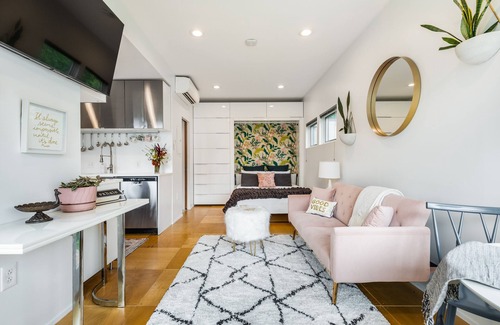 Tiny house with lots of windows and natural light, conveniently located in one of Pittsburgh's most up and coming neighborhoods of Garfield and convenient to surrounding neighborhoods of East Liberty, Bloomfield, Shadyside, Oakland, Highland Park, Lawrenceville, and the Strip District. Relax and enjoy a book on the front patio, get your work done on the foldout desk, or fold up the murphy bed and enjoy your yoga practice..