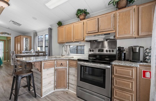 Discover the perfect beach retreat with our charming beach cottage located on the peaceful North side of Ocean Lakes. This home offers the perfect couples or small family retreat. This cozy beach cottage offers all the comforts of home. Two bedrooms with queen size bed in each room, and a queen size sleeper sofa. Two full baths with both tub and shower. Kitchen is fully stocked with silverware, cookware, Keurig coffee maker, ice maker, etc. There is a television in living room and one bedroom. Gas grill provided and large covered porch with lighting and seating offering the perfect place to enjoy meals, games, and family time. Full size washer and dryer located inside the home.