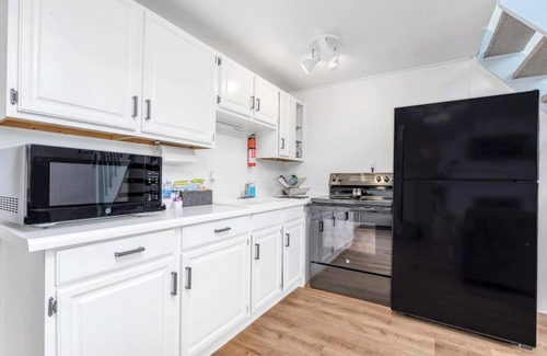 this unit is part of a 1960's chalet-style duplex, which means you will have a neighboring wall Guests have a private entrance and full private use of their chalet. Unit access is provided via a digital key code, so you can directly access it upon your check-in time.