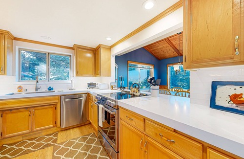 take in the fantastic view at this perfect beach getaway located off pacific coast highway, just 50 miles south of mendocino With a furnished back deck boasting a private hot tub and a gas grill, this home is ideal for your next vacation. Inside, you will have a full kitchen newly upgraded with top of the line kitchen appliances and Quartz countertops with a breakfast bar, a dining table, and excellent living spaces ! And on those occasional chilly nights, warm yourselves by the gas fireplace. Eternal Equinox also features a convenient Verizon wireless extender that improves phone service like you can't even imagine! Feel free to call back home and make sure everything is alright.