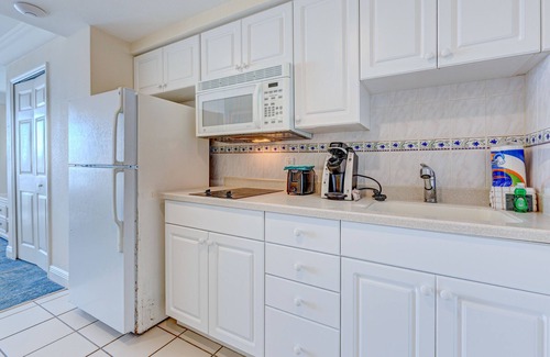 inside your ocean-view studio, you’ll find more perks than your typical resort room Whip up beach snacks in your well-equipped kitchenette, featuring a full-size fridge, microwave, and two-burner stove. Extras include high-speed WiFi for remote work and learning.