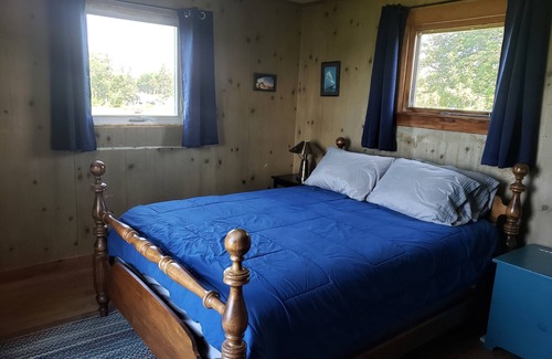 This rustic two-bedroom (one w/ queen bed, one w/ two twin beds), one bath cabin sits along the coast in Flanders Bay. All of the comforts, but in a picturesque Maine Downeast setting. Fully appointed kitchen, charcoal grill, Jotul wood stove with back-up monitor heat, full bath w/shower.