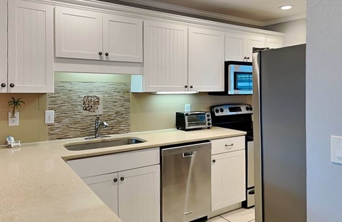 our guests enjoy unrestricted access to all areas of the 2br, 2ba condo, including the private balcony Self check-in through a smart lock allows for secure, hassle-free entry. Free parking options are available on-site and off-street for your convenience. Benefit liberally from the communal gym, hot tub, pool, and BBQ grill. The beachfront locale provides easy access to the golden sands, perfect for beachcombing, sunbathing and more.