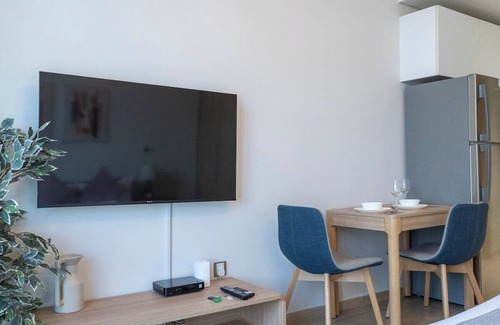 our charming studio apartment is located on the 8th floor so those scared of heights need not worry Greeted by the concierge as you walk in, other treats include free access to a gym , so if your family or friends annoy you, you know where to send them.