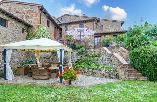 Large working farm "Ventena Vecchia", 500 m a.s.l.. 7 apartments in the property. 7.7 km from the centre of Montevarchi, 19 km from the centre of Gaiole in Chianti, 55 km from the centre of Firenze, in a quiet, sunny position on top of a hill, in the countryside. For shared use: property (fenced), swimming pool (13 x 5 m, depth 12 - 160 cm, seasonal availability: 04.May. - 04.Oct.). Outdoor shower, garden furniture, pool maintenance by the owner/gardener. In the house: central heating system, heating to be paid on the spot, heating available only from 01.Nov. - 07.Apr.. Breakfast possible on request (extra). Parking on the premises. Shop 5 km, grocery 1.1 km, supermarket 5 km, restaurant 1.2 km. Nearby attractions: Castello di Meleto 21 km, Radda in Chianti 23 km, Volpaia 27 km, Castellina in Chianti 34 km, Greve in Chianti 39 km, Siena 55 km. Please note: the owner lives on the same property.