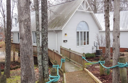 Condo #333 is a one bedroom condo that features inviting nautical décor with tropical bedding on the king-size bed, pastel walls, seashell lamps, and beach-inspired accents that create the feel of a Florida getaway. The living room and bedroom are carpeted, while the fully equipped kitchen, bathroom, and entryways feature tile floors for easy care. Guests can enjoy relaxing indoors with Wi-Fi, central heat and air, TVs with DVD players in both the living room and bedroom, and comfortable recliners. A gas fireplace adds cozy ambiance, and the dining table for four offers views of the deck and bay. The unit also includes a stackable washer and dryer for guest use, as well as a pull-out sofa for extra sleeping space. Outside, a wooden walkway leads to the front door, while another door opens onto a spacious deck equipped with a gas grill, dining table, anti-gravity chairs, and views of the bay with both sunny and shaded areas for lounging, reading, or sunbathing. Fishing is available right from the bank of Barkley Lake at the edge of the property—a perfect perk for anglers. Parking is conveniently located in front of the condo, and the unit is just steps from one of three pools and a short drive or golf cart ride to the spa, health club, shops, live theater, and restaurants in Grand Rivers, the Village Between the Lakes. Please note: this is a non-smoking, no-pets unit. While it is thoroughly cleaned, the owner is a pet owner, so we cannot guarantee it is completely allergen- or dander-free..