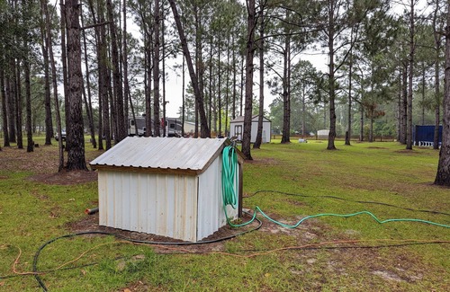 Beautiful camping area on a secluded, safe, 3 acre, sandy, wooded lot. Access to: Porta jon toilet, solar outdoor showers and water. Fifteen mins from Gulf Shores, Al. Minutes from Pirates Cove and Barbers marina. Parking and pets allowed on leash..