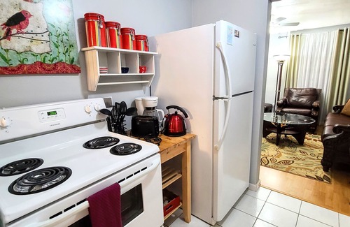 beautifully decorated, very clean, bright and nice this unit has a fully equipped kitchen with all the necessary accessories (microwave, coffee maker, dishes, pots and pans etc); lovely and cozy family room with a soft couch, armchairs and TV with entertainment channels. There is a wireless internet connect everywhere in the unit.