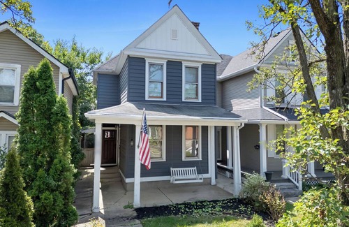 Transport yourself to a bygone era with a stay at Our Locally World Famous Home in the vibrant and historic neighborhood of German Village! This premier destination tucked away just south of downtown Columbus showcases cobblestone streets alongside beautifully preserved 19th-century architecture, a picturesque setting for a leisurely stroll. As you arrive at the home, you’ll quickly discover why it’s a destination in its own right, the exterior exuding a cheerful and charming atmosphere that welcomes you home. Savor the fresh air and warm sunshine on the back patio, dining on a meal al fresco or whipping up your own culinary creations on the grill.