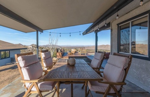 overlook joshua tree is a revitalized ranch home featuring forever views of the national park from a gorgeous pool & deck Set in a secluded hilltop location, this home can accommodate and entertain 6 guests & has a decorative fireplace & pit. Premium amenities, big windows & Southwestern decor makes you feel a powerful connection to the local landscape.