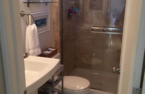 owner lives in main house on the property, but structures are separate and private Private driveway/parking space for use by guests. For longer stays, laundry is available. Beach chairs and an umbrella are provided. Pets are welcome, and a friendly dog lives on the main part of the property.