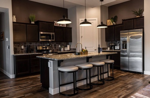 Welcome to our luxurious model home! This 3-bdrm, 2-bath sanctuary sleeps 8, with accommodation for 6 individuals to sleep separately. The stunning primary suite dazzles with an ensuite bath and walk-in closet. Entertain in style with a pool table, state-of-the-art swim spa, and cozy backyard and seating area. Professionally decorated, this pristine retreat promises an elevated vacation experience. Enjoy the convenience of a 3-car garage, plus ample driveway and street parking for your vehicles.