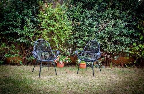 Paradise house on one level. 140 meter, 2 bedroom 2 bathroom (ensuite off master) house with beautiful garden and covered terrace in a quiet cul de sac. light and sunny interior. Garden with fruit trees visible from every window. tastefully and elegantly furnished. Tv / office nook . Kosher or vegetarian kitchen. laundry room. parking. central aircon. fire place.