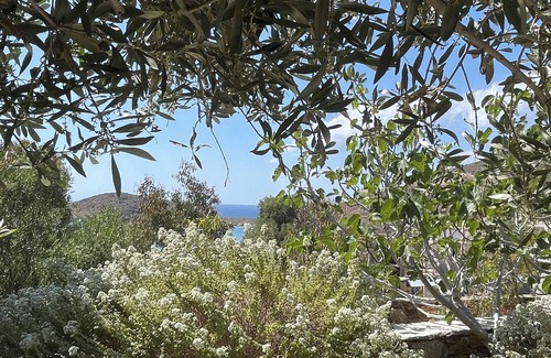 our villas are set in more than an acre of organic gardens with their own olive grove, ecological vegetable gardens with figs, oranges and lemon trees (our greek gardener will ensure you are provided with healthy produce each week), blazes of bougainvillea and passionflower tumbling down the house exteriors You can walk in one direction into the hills and nature reserve areas of Northern Syros with more spectacular and semi-isolated beaches, and in the other direction through the valley (or along the cliffs) to the buzzing village of Kini around 1km away with its rich choice of restaurants along the sea front and its charming side streets with a mini-market and bakery.