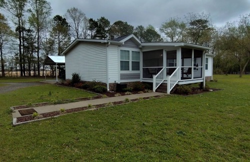 This home is situated in the back of 4.64 acers. Quiet and secluded. At the end of a dead end road. Enjoy the private and spacious surroundings of this home and property . This is an entire home. Enjoy the comfortable living space and extra comfy mattress for the perfect nights sleep. Plenty of space through out the house. Let the family enjoy the game room while you relax on one of the decks .The land has 12 peacans trees, a fig tree and 3 grape vines. There is also a pond on property . No fishing a loud. We are close to hwys 70 , 11 , 55 and 258.No animals of any kind. Everyone must be listed on the rental contract..