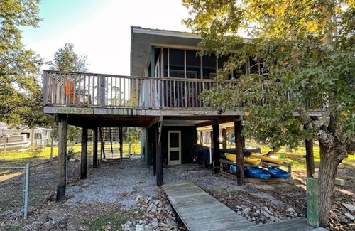 Moonrise Cottage features two bedrooms, one and a half baths, a spacious living area, and a full kitchen. The space is filled with comfortable furniture and eclectic art. Outside, you will find a large deck, screened porch, dock, and fenced dog yard. The large yard has plenty of room to play and park your boat or RV. The property is perfectly situated on an out of the way slew of the Bon Secour River. Fish off of the dock or explore the river by boat; you are minutes from the mouth of Bon Secour Bay. Within walking distance, the neighborhood features four fresh seafood markets, an outstanding restaurant, two public boat ramps, and three historic churches. The Cottage is 20 minutes from Foley, AL where you will find the Tanger outlets and OWA. OWA is a unique destination for youth sports tournaments, an amusement park, and a year round indoor water park. Foley also boasts a historic downtown with a railroad museum, beautiful park, and other local favorites. Moonrise Cottage is only 25 minutes from the gorgeous white sand beaches of Gulf Shores, AL, where you will find endless entertainment possibilities including the annual Hangout Fest. Gulf State Park features access to pristine beaches, miles of well maintained scenic biking/walking trails, and farm to table dining. A turn down the peninsula to Fort Morgan offers dog friendly beach access, bird sanctuaries, and the historic Fort itself (also dog friendly). Fort Morgan was an important fort defending the pass into Mobile Bay. Her sister fort, Fort Gaines, is a short ferry ride away across the pass on Dauphin Island. 25 minutes in the other direction will take you to the picturesque Eastern Shore city of Fairhope, AL. Fairhope is a lovely, dog friendly town with an upscale downtown shopping and dining area. Down the hill at the pier, locals gather every evening to witness the breathtaking sunsets. Whether you are snowbirds looking for a peaceful retreat or family and friends looking for adventure, Moonrise Cottage is your ideal destination!.