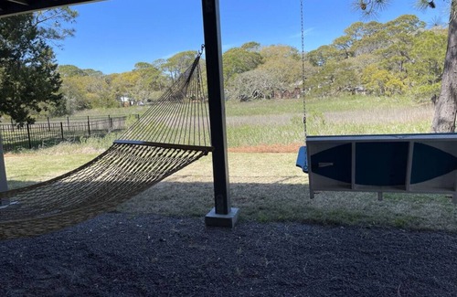 Welcome to Peaches Folly! This beautiful, newly renovated two-bedroom house has plenty of room for a few extra guests. We're just 400 feet from the beach access with a beautiful marsh view off the back porch. You'll be just 20 minutes from downtown Charleston.