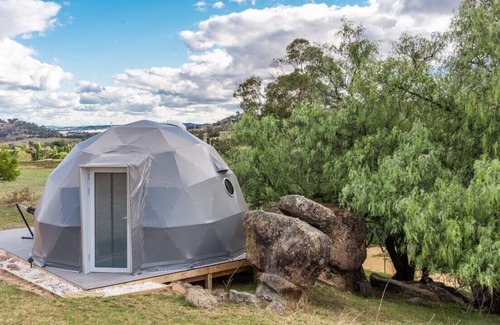 situated in the heart of central nsw witness the awe-inspiring milky way without the light pollution of the city plus fantastic sunsets The dome is surrounded by bushland in a completely tranquil and private space with the sounds of birds and wildlife all around you, it is the perfect place to relax. The bathrooms are shared between the three listings on the property and has a fantastic rain shower with hot water, two flushing toilets in private stalls, a large sink and mirror. Towels are provided for your convenience.