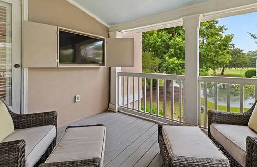 amenities include: wet-bar, tvs, wifi, keurig, large screen porch with tv, elevator, laundry room, fairway oaks villas community pool