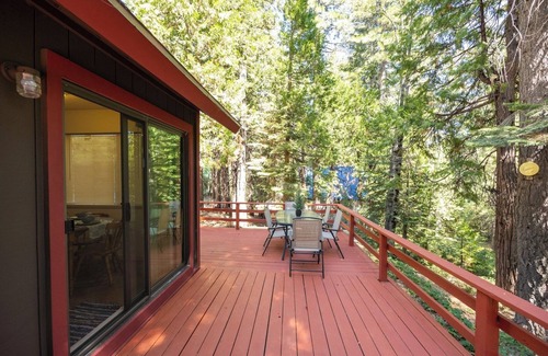 Charming mountain cabin amongst 1/2 acres of pines and cedar trees in a small private neighborhood with plowed roads. Primary BR with king bed and TV/VCR. Second BR with queen bed and TV. Plenty of board games in closet. Close to ponds and small neighborhood lake. Huge deck overlooking property with dining table, 6 chairs & propane grill, Wood burning stove in living area gives a cozy feel on those chilly evenings or central heat is available. Fully stocked kitchen with electric stove/oven, fridge, Keurig coffee maker and microwave. Stackable washer/dryer in laundry room. Firewood rack on deck is stocked with wood and kindling so no trudging through the snow for wood. No Wi-Fi or cable but smart TV in living area can be connected to your phone's hot spot to stream programs. Also VCRs and loads of DVDs. Good cell service. 20 Miles from Sugar Bowl and Donner ski areas. 30 miles from Truckee which has multitudes of shops, restaurants and NorthStar ski area. One hour to Lake Tahoe area shops, dining and casinos. Many opportunities for hiking, fishing and other outdoor activities in the adjacent Tahoe national forest area. 1 mile east is the Nyack exit which has a gas station, snow park and small store for foods and other sundries. Come relax and enjoy the outdoors in our cabin in the woods..