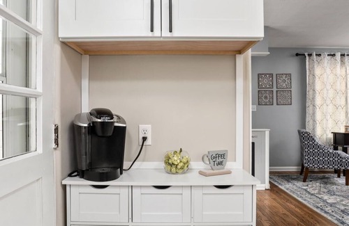 - fully equipped kitchen with an oven, stove, fridge, dishwasher, microwave, and keurig coffee machine