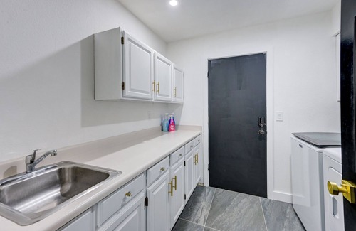 the spacious interior features a modern kitchen with stainless steel appliances and all the essentials to cook a great meal A full-size washer and dryer make extended stays easy and convenient.