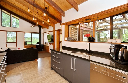 Private, quiet. Industrial style home. A perfect getaway from the busy city. A stones throw to The Pines Beach Hall for weddings and functions. Or down to the creek for white-baiting and fishing. Beach is walking distance (or you can drive to the beach car park. Forest Walkways and cycle tracks. This home is in a wonderful location with views to the mountains. The wetlands are home to Pukeko's and native birds. A beautifully renovated home in a relaxing beach haven.