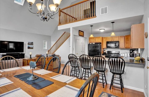 this home does not skimp on charm From the moment you walk into our thoughtfully decorated chalet, we want you to feel at home. This all starts with how we set up our beds to maximize the space. The home is a 4/3 equipped with a king, two queen beds and a full over a twin with an additional trundle twin underneath. Additionally, we've converted the basement bonus room into a pseudo-bedroom by adding a brand new memory foam mattress fold out queen sectional sofa to the room (we'll let your family draw straws for who sleeps where—ha!).
