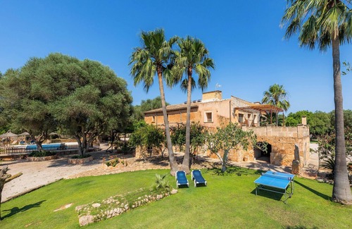 "Ponent" with Wi-Fi, Pool, Garden & Terrace (Pool shared between 5 Properties) is located in Llucmajor. "Ponent" with Wi-Fi, Pool, Garden & Terrace (Pool shared between 5 Properties) provides accommodation, featuring Security/Safety, Sports/Activities, Bedding/Linens, among other amenities. This House features Security/Safety, Sports/Activities, Bedding/Linens, to make your stay a comfortable one.
