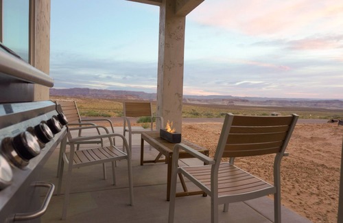 Unwind at Horizon Retreat for your next Lake Powell adventure. This NEW 4BR/2.5BA adobe-style home sleeps 15 and offers stunning desert vistas and modern Southwestern finishes. Minutes from Wahweap Marina, Lone Rock Beach, Horseshoe Bend, Antelope Canyon & more. The perfect hub for day trips to the Grand Canyon, Zion, and Bryce Canyon. Enjoy sunset views from the hot tub and patio, game room (ping pong & pool), gourmet kitchen, and TVs in every room. Ideal for families & groups.