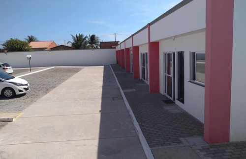 In a gated community, a house with 02 bedrooms, one of which is a suite and the other reversible to the social wc, living room, kitchen, service area, a parking space, guardhouse, the condo's laser area with play groud, swimming pool for adults and children, barbecues, all furnished with dresser, smart tv set, free wifi, double bed with extra mattress also double, single bed, also with an extra single mattress, sofa bed, in the laser area, we have a mountable plastic table, cooler, stool-like seats, two beach chairs, kitchen cabinets with cooking accessories, cutlery in general, water, refrigerator, tv rack, air conditioner in just one room, two fans..
