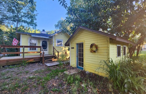 A cozy and comfy cottage nestled in the heart of Safety Harbor. Bohemian style decor welcomes you as you enter the family room through a porch. A true stone fireplace, original wood floors and surprisingly spacious rooms invite you to relax and enjoy. Only a few steps away from one of the most beautiful public parks facing the Harbor. the yellow cottage is lovingly nicknamed 'the yellow submarine'..