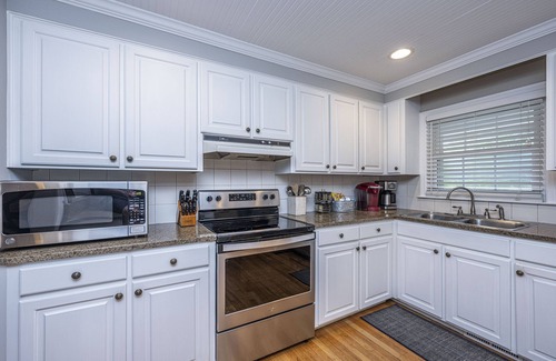 We are excited to be hosting guests since March 22, 2019! We will update pictures of our home as we make changes and/or additions. This house is approximately 2000 square feet with a FROG (finished room over garage, no closet). The kitchen is open to the dining room and breakfast room. The dining room has a fireplace and table that will seat 6 people. The breakfast room is off the kitchen and seats 4 people and opens to the screen porch. We also have a large living room off the dining room perfect for lounging, reading a book, watching tv or just relaxing. The living room also has 2 double doors that also open to the screen porch. The home has 4 bedrooms and 2 full bathrooms. Two bedrooms and the frog have queen beds, and the master bedroom has a king bed. The master bedroom also has a private bathroom. The FROG has a window unit for heat/air new 2021. Hardwood and tile flooring are throughout the house. Brand new LVP flooring in the bedrooms December 2021. New bed and mattress in first bedroom on left down hall 2022. New mattress and frame in frog 2022. New bench on front porch new 2023. RING installed Aug 2023 at front door for safety. New grill 2024.