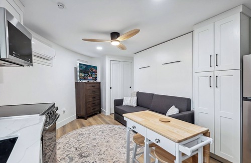 Escape to this newly remodeled casita. Enjoy stunning views from your private entrance to this charming studio. Featuring a convenient Murphy bed, allowing for versatile space, along with a full kitchen and in-unit laundry for your comfort. Pet-friendly and designed for relaxation, the casita at The Castle is perfect for solo travelers or couples seeking a peaceful getaway. This 4-plex has fully self contained units, with each having their own laundry room, kitchen and bath. The property backs up to thousands of acres of hiking, off-roading and horseback riding, while still being in town to enjoy all the conveniences of Havasu's restaurants, stores and Parks. Visit the Havasu Riviera launch ramp and Sara Park dog park just 4 miles away. Traveling nurses, this is 7 miles to Havasu Regional Hospital.