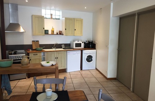 kitchen corner with living room overlooking the garden (glass bay); possibility of broiling APARTMENT GIVING IN A DEAD END QUIET AREA / INDEPENDENT ENTRY / BATHROOM WITH SHOWER / POSSIBILITY OF SLEEPING IN BEDROOM FOR 2 PEOPLE AND 1 PERSON ON SOFA BED / APARTMENT LOCATED IN FAMILY HOUSE / RECENT RENOVATION / OWNERSHIP RENOVATION BUSINESS: REFERENCE LEVEL OF THE TOURIST OFFICE / WE ALSO HAVE A T2 APARTMENT (TERRACE) THAT IS REFERENCE BUSINESS CHARTER AND 3 HOLIDAY KEYS TO THE SAME ADDRESS / ANNOUNCEMENTS 678425 IF YOU WANT TO SEE OUR WORK. convivials we are waiting for your visit