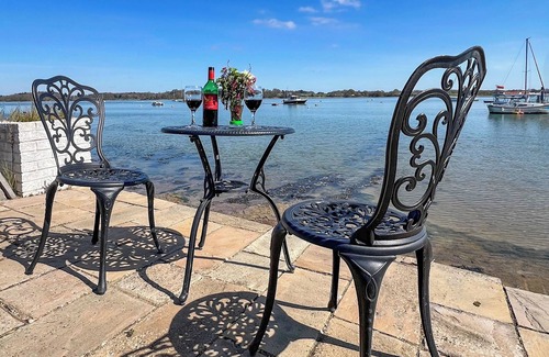 separate toilet. Electric central heating, electricity, bed linen, towels and Wi-Fi included. Welcome pack. Garden with sitting out area and garden furniture. Bike and golf store. Electric car charging point, at cost. Private parking for 1 car. No smoking. Please note: The property has an unfenced pond 5 yards away.. Set in an enviable position beside the River Deben, the award-winning Quayside Cottage boasts spectacular and ever-changing views across the river. It has been completely renovated to provide a lovely retreat for either a single person or a couple, just a short drive from the bustling market town of Woodbridge. The accommodation with stylish interior, all provided on one level, offers everything you could wish for in a cosy self-catering holiday home. The property is well equipped for holidaymakers all year round and ideally situated to explore the Suffolk countryside and the Heritage Coast.