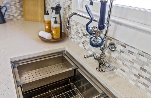 brand new, fully equipped with all the needed tools and some pantry essentials Mini-fridge, Ninja Hot and Cold Brew System with frother, dishes, utensils, cookware, waffle maker, Brita water pitcher, dishwasher and detergent, oven with built-in air fryer, low profile microwave, and a pre-rinse unit kitchen faucet.