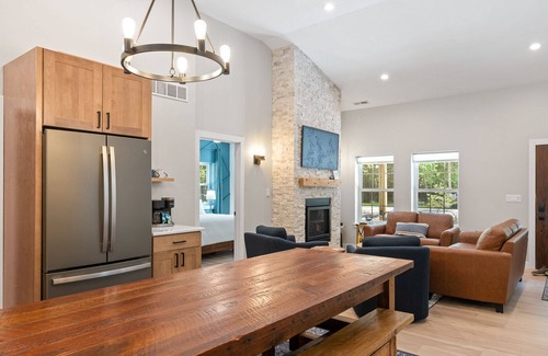 this spacious and inviting home is the perfect retreat for families, boasting 3 bedrooms and 2 baths, comfortably accommodating up to 8 guests, best suited for up to 6 adults and 2 children Inside, our home is equipped with all the amenities you need for a comfortable and enjoyable stay. Unwind and create lasting memories around the firepit, complete with comfortable Adirondack chairs, for storytelling or roasting marshmallows under the starry sky. The back patio runs the length of the home, partially covered, providing a serene spot for relaxation and outdoor dining.