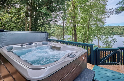 Surrounded by trees, and with a stunning lake view, this 1940 cottage will have you in relaxation mode in no time. Explore the area, or simply hang out and enjoy the view, hot tub, fire pit, kitchen with new appliances, and indoor fireplace. Nearby, there are lakes, scenic drives, Bethel Woods, and the towns of Narrowsburg, Livingston Manor, and Roscoe. Dogs allowed with approval, and the property is fully fenced. There are other houses nearby, but still private. Note that while my home has a lovely view of the lake, due to HOA rules, short-term renters are not allowed to use the lake..