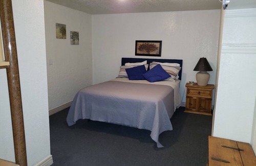 our quaint apartment has a queen bed, tv in the master and a queen bed in second bedroom Amenities include refrigerated air, full size washer and dryer, private lit gated parking with security camera, Wi-Fi, a Roku Smart TV with a complete kitchen with full size stove/oven, dishwasher, microwave oven and toaster oven.